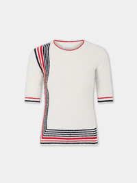 Fitted short sleeves top in ecru terry jersey, with red and navy stripe details. - Color: Ecru / Red / Navy - Crew neck - Short sleeves - Composition: 70% Cotton, 30% Polyamide - Made in Romania Size & Fit - Model's height: 180 cm / 5ft 11in - Model wears a size FR 36 / UK 8 / US 4 - This style is true-to-size - We recommend your usual size.