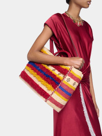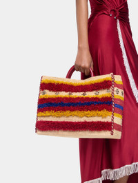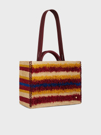 Color : Natural Raffia / Orange / Red / Blue Double burgundy leather handle for mutliple wears : handcarry or over the shoulder. Magnetic closure. - Color : Natural Raffia / Orange / Red / Blue - Double burgundy leather handle for mutliple wears : handcarry or over the shoulder. - Magnetic closure. DETAILS - Composition : 100% Raffia - Made in Madagascar