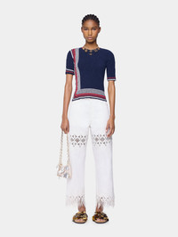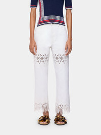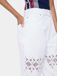 Denim trousers with embroidery details - Color: Off white denim - Geometric embroideries details and fringed edges. - Composition: 100% Cotton - Made in Italy Size & Fit - Model's height: 180 cm / 5ft 11in - Model wears a size FR 36 / UK 8 / US 4 - This style is true-to-size - We recommend your usual size.
