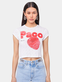 WHITE CROP TEE-SHIRT IN JERSEY POINTELLE