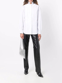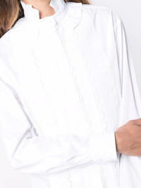 ruffled shirt Highlights - White - Cotton - Ruffle collar - Front button fastening - Buttoned-cuff sleeves - Long sleeves Imported Composition Cotton 100% SIZE & FIT Model measurements Height 5 ft 11 in(1.8 m) Bust/Chest 31.1 in(79 cm) Hips 34.25 in(87 cm) Waist 22.83 in(58 cm) FittingInformation This piece fits true to size. We recommend you get your regular size Cut for a loose fit Made with a mid-weight non-stretch fabric Washing instructions Machine Wash