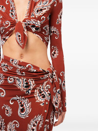 Paisley long split skirt Highlights - Red/ - Stretch-design - All-over paisley print - Asymmetric design - Gathered detailing - High waist - Side slit - Straight hem Imported Composition Viscose 87%, Elastane 13% SIZE & FIT Measurement HIPS 34.25 in(87 cm) LENGTH 40.15 in(102 cm) WAIST 27.16 in(69 cm)
