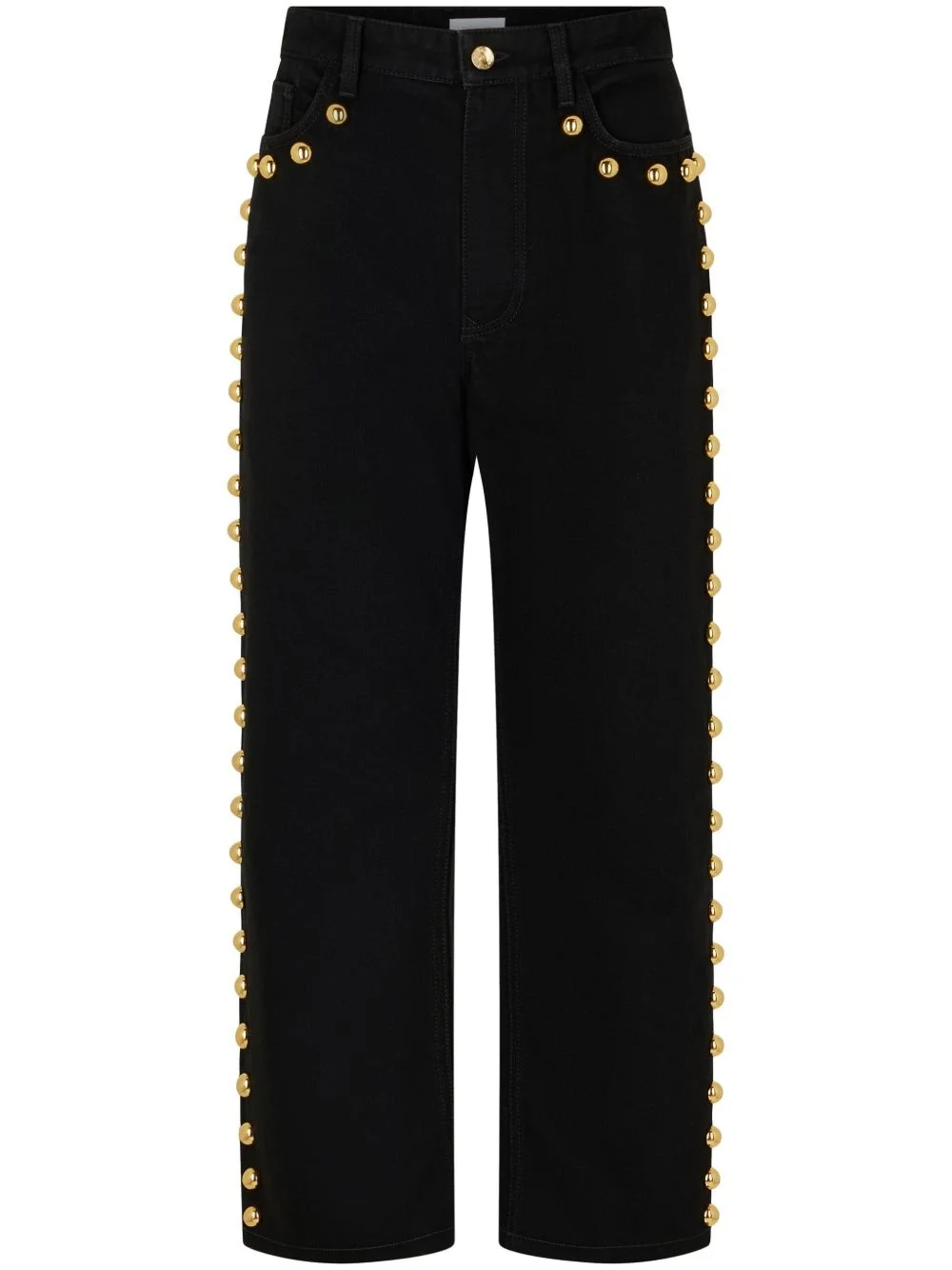 wide-leg jeans black cotton denim stud embellishment wide leg front button and zip fastening classic five pockets Made in Italy Composition Cotton 100%