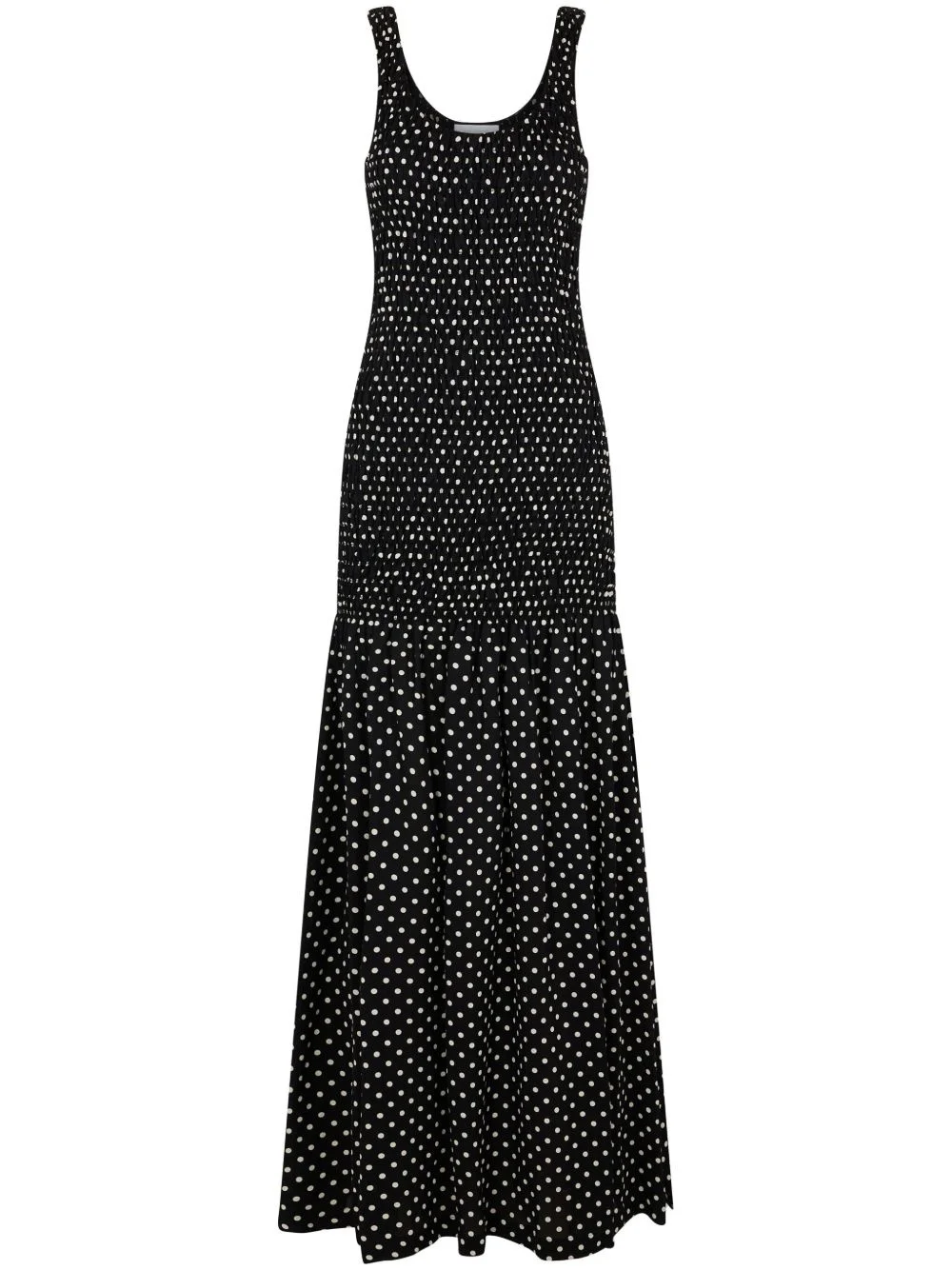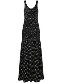 polka-dot crepe long dress Highlights - Black - Polka dot print - Ruched detailing - Round neck - Wide shoulder straps - Straight hem - Mid-length Imported Composition Viscose 100%