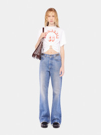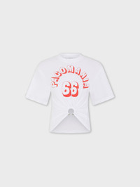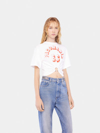 Short-sleeved cropped printed cotton t-shirt with silver piercing detail. - Color: White - Short sleeves - Round neck - 90% Viscove, 10% Elasthanne - Made in Portugal Size & Fit - Model's height: 180 cm / 5ft 11in - Model wears a size FR 36 / UK 8 / US 4 - This style is true-to-size - We recommend your usual size.