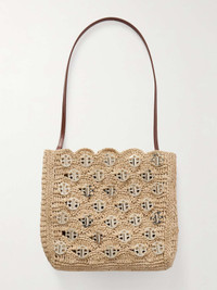 Rabanne has incorporated its shimmering chainmail discs into its rendition of the must-have accessory of the season: the raffia bag. It has a scallop-trimmed open top and elongated leather straps and will hold your phone, wallet and keys. Details & Care - Beige raffia, brown leather (Calf) - Top handles - Unlined - Magnetic fastening at top