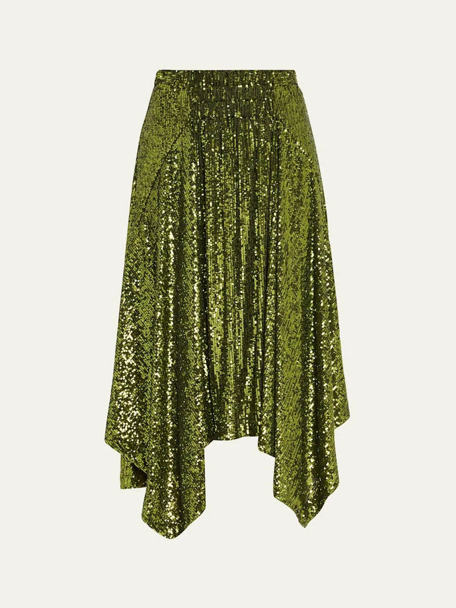 Asymmetric Hem Sequined Midi Skirt