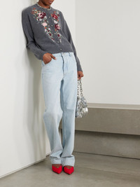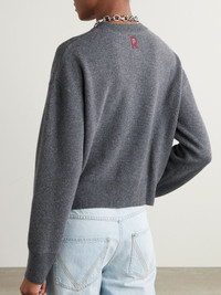 Embroidered crystal-embellished wool and cashmere-blend cardigan Dark gray