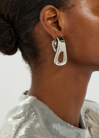Info & Care Rabanne metal drop earrings Front-back style, cut-out detail, designer-engraved Post fastening for pierced ears Presented in a designer-stamped box; Please note, we are unable to refund or exchange for pierced earrings; Size & Fit Drop: 4.5cm