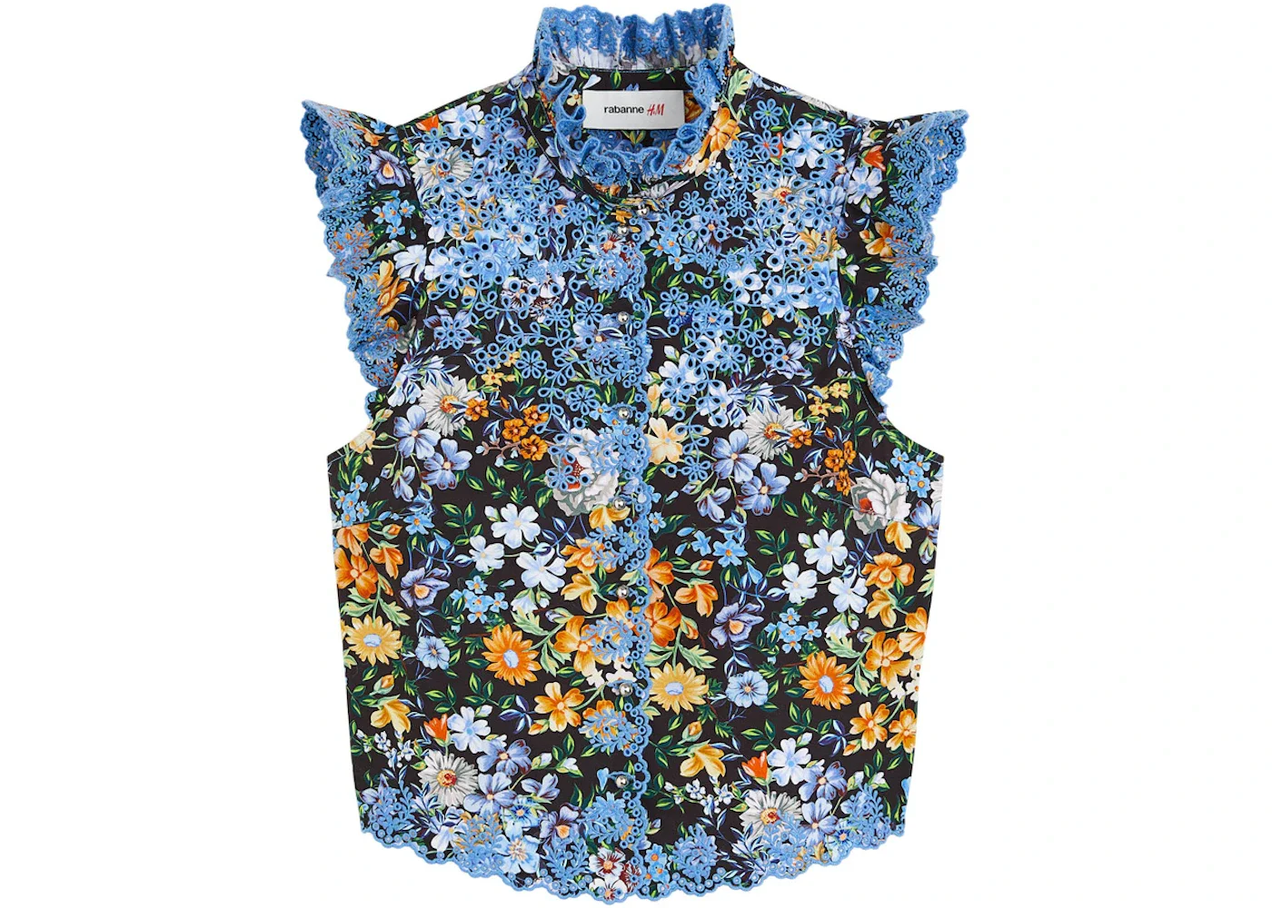 Rabanne H&M Patterned Poplin Top Black Multicolor