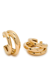 Info & Care Rabaanne metal hoop earrings Layered design, designer engraved Butterfly-fastening for pierced ears Presented in a designer-stamped box Please note; we are unable to refund or exchange for pierced earrings Size & Fit Drop: 2cm
