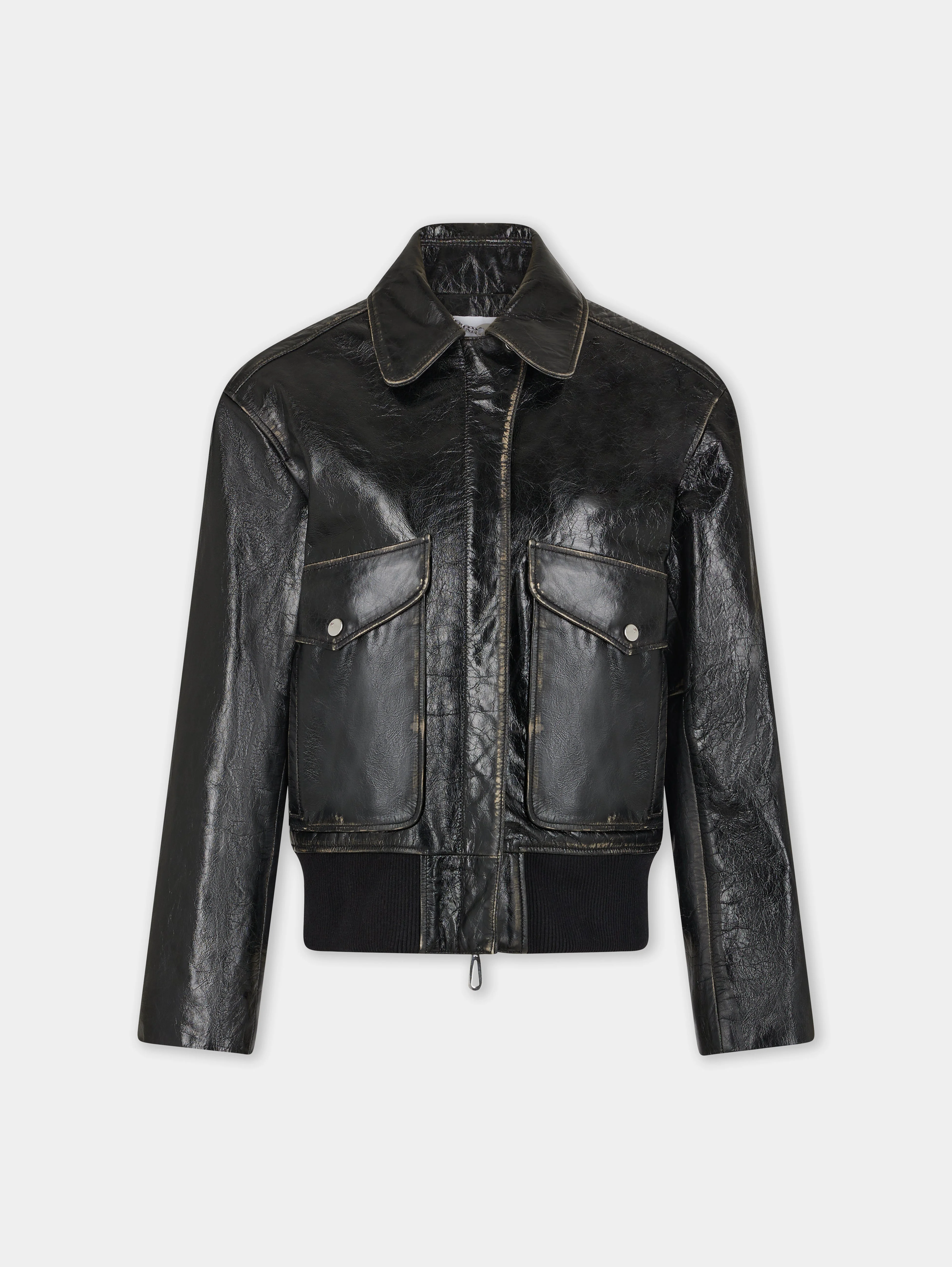 BLACK AVIATOR BLOUSON JACKET IN LEATHER