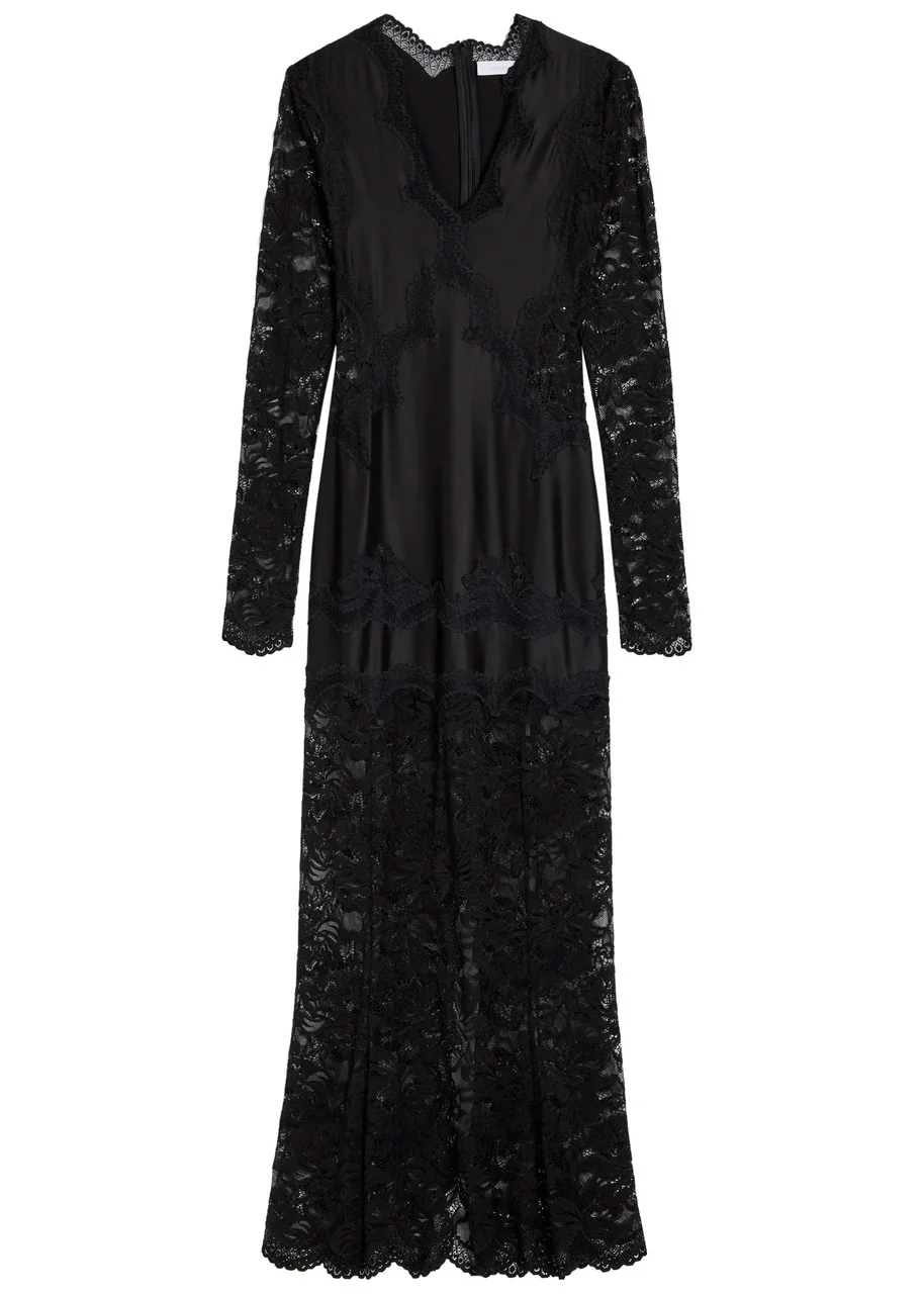 Rabanne V-neck Lace and Jersey Maxi Dress