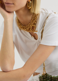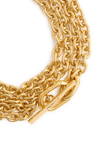 Info & Care Rabanne metal necklace Layered chain design, designer engraved T-bar fastening Presented in a designer-stamped box; Size & Fit Length: 90cm Width: 2cm