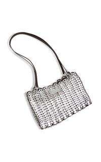 Tinged with his chic Parisian spirit, Julien Dossena returns with a lineup of jewelry and accessories in varied textures and materials that demonstrates the sensorial power of fusing contrasts. This newest tote from the label boasts a leather and steel body that can reverse to showcase either material across its signature chainmail. PRODUCT DETAILS - Magnet fastening - Composition: 90% leather 10% steel - Imported SIZE & FIT - This item measures approximately 23 x 18 x 3 cm