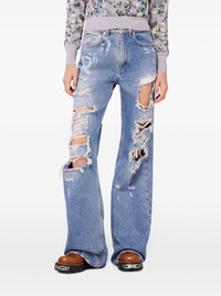 ripped-detailing cotton wide-leg jeans