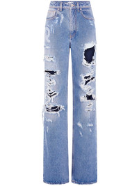 ripped-detailing cotton wide-leg jeans Highlights - Powder blue - Cotton - Ripped detailing - Logo print to the front - Belt loops - Concealed fly and button fastening - Classic five pockets - Wide leg Made in Italy Composition Cotton 100% Washing instructions Read Manufacturer Guidelines