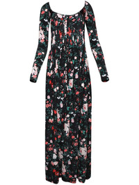 rose-print maxi dress Highlights - Black/multicolour - All-over rose print - Corset style - Pintuck detailing - Scoop neck - Scoop back - Front button fastening - Long sleeves - Flared hem - Floor-length Made in France Composition Viscose 90%, Spandex/Elastane 10% SIZE & FIT Measurement SLEEVE LENGTH 20.47 in(52 cm) LENGTH 48.81 in(124 cm) WAIST 27.55 in(70 cm) BUST 32.28 in(82 cm)