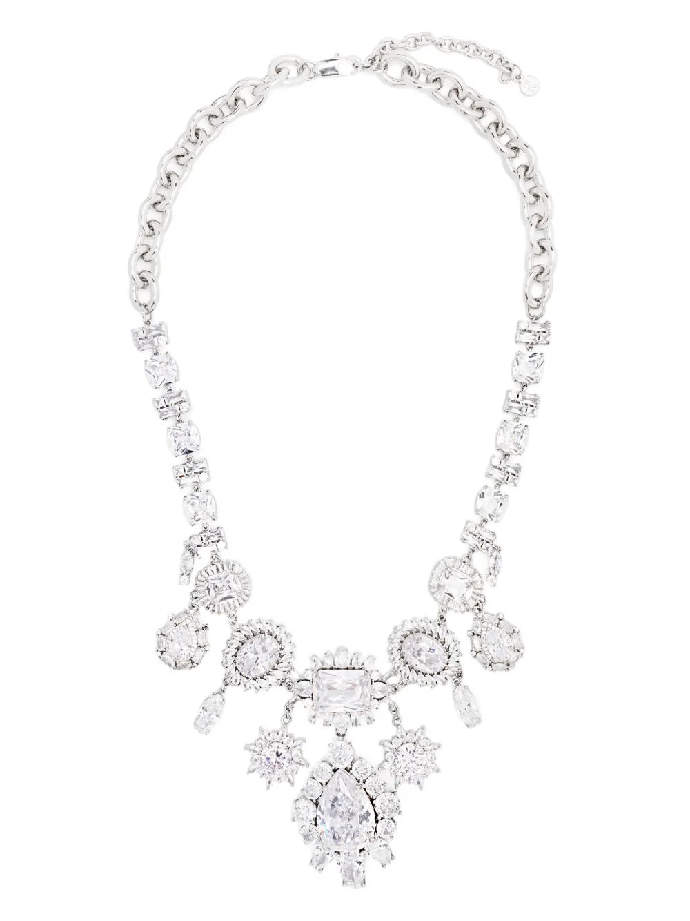 crystal-embellished necklace Highlights - Silver-tone - Lobster claw fastening - Statement pendant - Chain-link detailing Imported SIZE & FIT Model measurements Height 5 ft 10 in(1.78 m) Bust/Chest 33.46 in(85 cm) Hips 36.22 in(92 cm) Waist 23.22 in(59 cm) Measurement Length when open 23.62 in(60 cm) Minimum Length 20.47 in(52 cm) PENDANT LENGTH 2.95 in(7.5 cm) PENDANT WIDTH 1.37 in(3.5 cm) WIDTH 0.39 in(1 cm)