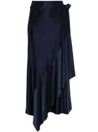 satined midi skirt Highlights - Navy blue - Tied waist - Wrap design - Asymmetric hem Imported Composition Viscose 90%, Elastane 10%
