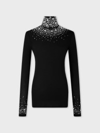 High-neck second-skin jersey top with hotfix details. - Color: Black - Long sleeves - High neck - 90% Cupro, 10% Elasthanne - Made in Portugal Size & Fit - Model's height: 180 cm / 5ft 11in - Model wears a size FR 36 / UK 8 / US 4 - This style is true-to-size - We recommend your usual size.