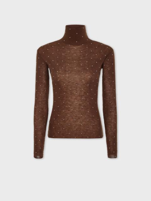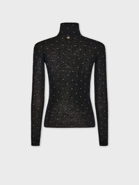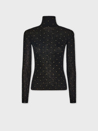 Long sleeves second-skin turtle-neck top in wool with stud details. - Color: Black - Stand collar - Long sleeves - Composition: 100% wool - Made in China Size & Fit - Model's height: 180 cm / 5ft 11in - Model wears a size FR 36 / UK 8 / US 4 - This style is true-to-size - We recommend your usual size.