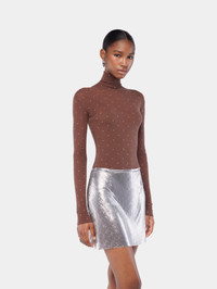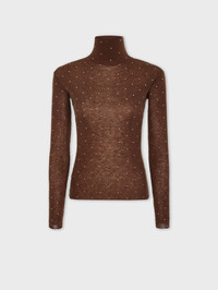 Long sleeves second-skin turtle-neck top in wool with stud details. - Color: Brown - Stand collar - Long sleeves - Composition: 100% wool - Made in China Size & Fit - Model's height: 180 cm / 5ft 11in - Model wears a size FR 36 / UK 8 / US 4 - This style is true-to-size - We recommend your usual size.