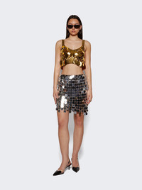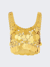 Details - Cropped silhouette - Sequin design - Layered details - Scoop neck - Sleeveless - Scallop hem - Care according to label - Material: 100% Plastic - Model is 5'9"/175cm and is wearing a size FR36 Brand Style: 24FITO783PS0499 Designer/Brand: RABANNE