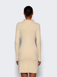Details - Fitted silhouette - Mini length - Crewneck - Long sleeves - Signature gold collar detail at neckline - Straight hem - Care according to label - Material: 46% Silk, 38% Cotton, 13% Polyamide, 3% Elastane - Model is 5'9"/175cm and is wearing a size S Brand Style: 25PMRO066ML0308 Designer/Brand: RABANNE