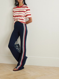 Embroidered Striped Cotton-blend Bouclé Straight-leg Pants