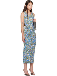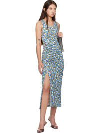 Stretch viscose jersey midi dress. Floral pattern printed throughout. · Scoop neck · Gathering at front · Offset press-stud tab at vented side seam · Logo-engraved silver-tone hardware Supplier color: Golden thistle 95% viscose, 5% elastane. Made in Portugal 251605F054007