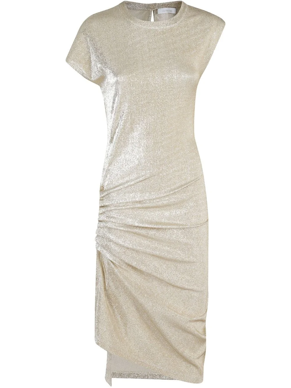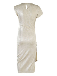 gathered-detail midi dress Highlights - Gunmetal grey - Single rear button fastening - Lurex detailing - Side slit - Single short sleeve Imported Composition Viscose 77%, Polyester 16%, Elastane 7% SIZE & FIT Measurement HIPS 29.92 in(76 cm) LENGTH 43.3 in(110 cm) WAIST 23.62 in(60 cm) Washing instructions Dry Clean Only