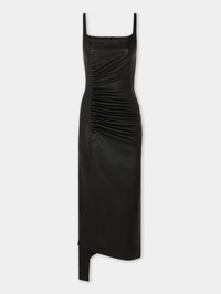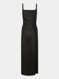 - Color: Black - Square neck - Sleeveless - Midi length - Details of 19 black snap buttons. Draped effect fabric. DETAILS - Composition: 100% Lambskin - Made in Turkey - Model's height: 180 cm / 5ft 11in - Model wears a size FR 36 / UK 8 / US 4 - This style is true-to-size - We recommend your usual size.