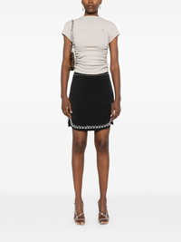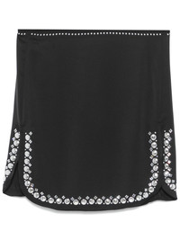 studded-hem mini skirt Highlights - Black - Satin weave - Fluid - Stud embellishment to the hem - Concealed side zip fastening - Side slits - Unlined - Straight hem - Thigh-length Imported Composition Polyester 100% SIZE & FIT Model measurements Height 5 ft 11 in(1.8 m) Bust/Chest 31.49 in(80 cm) Hips 36.61 in(93 cm) Waist 24.4 in(62 cm) FittingInformation This mini-length skirt is intended to be worn just below the waist Made from a midweight non-stretch fabric