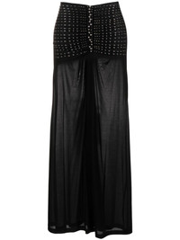 high-waisted studded skirt Highlights - Black - Stretch-design - Semi-sheer construction - Silver-tone stud detailing - Gathered detailing - High waist - Flared hem - Mid-length Imported Composition Cupro 87%, Spandex/Elastane 13% SIZE & FIT Model measurements Height 5 ft 11 in(1.8 m) Bust/Chest 31.49 in(80 cm) Hips 35.82 in(91 cm) Waist 24.8 in(63 cm) FittingInformation This maxi-length skirt is intended to be worn just below the waist Made from a midweight stretch fabric, this piece offers elasticity and flexibility when worn This piece fits true to size – take your usual size Washing instructions Hand Wash