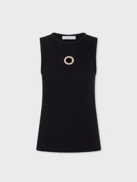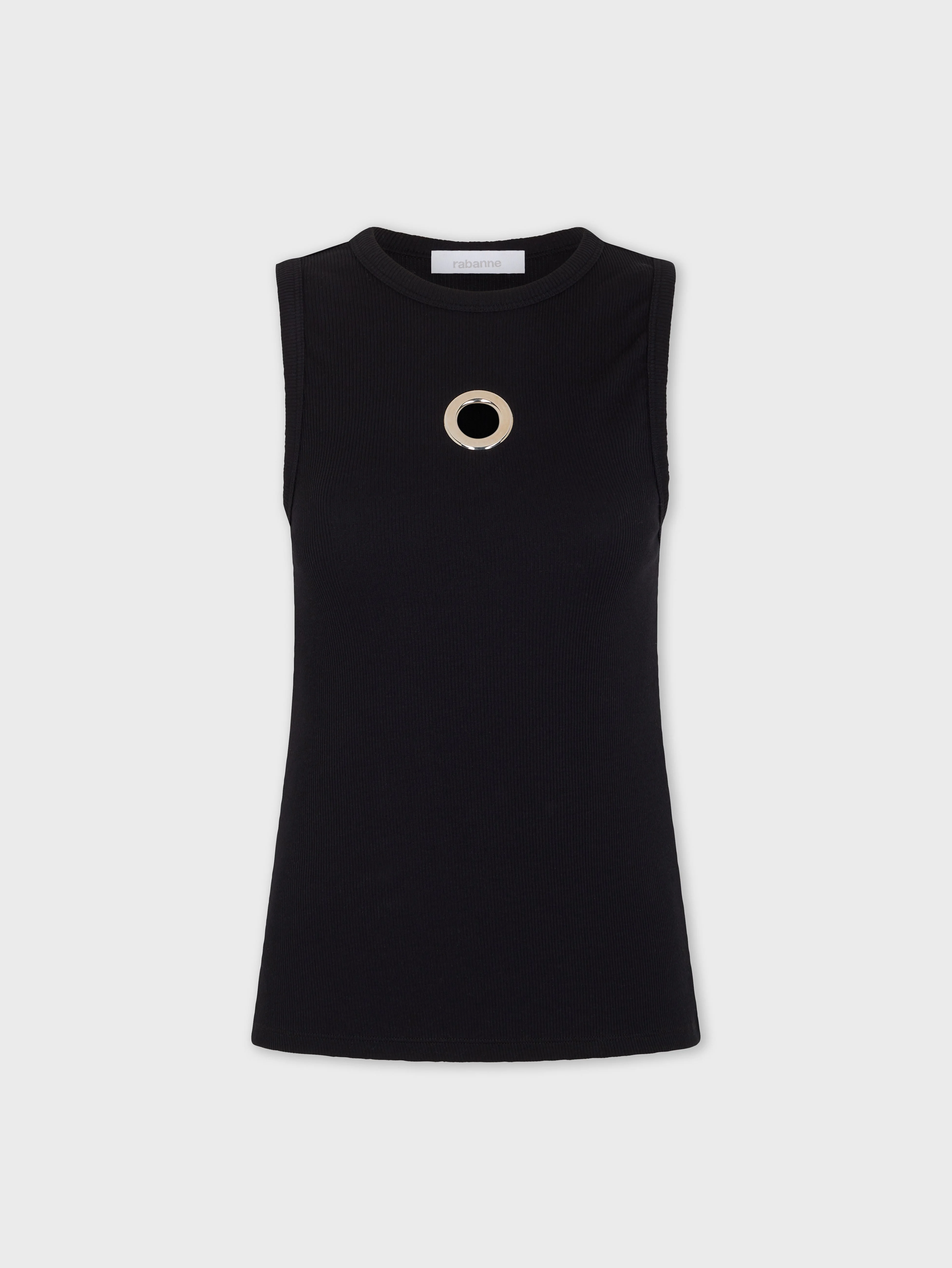 Tank top in cotton jersey with silver metal eyelet detail. - Color: Black - Crew neck - Sleeveless - Composition: 97% cotton, 3% elastane - Made in Portugal Size & Fit - Model's height: 180 cm / 5ft 11in - Model wears a size FR 36 / UK 8 / US 4 - This style is true-to-size - We recommend your usual size.
