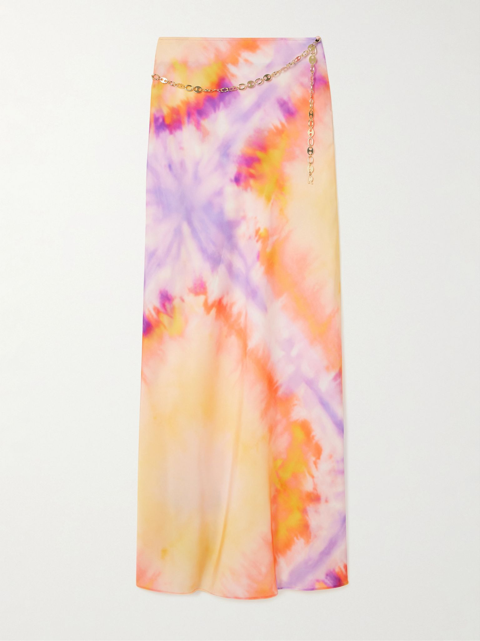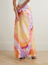 Chainmail-embellished tie-dyed satin maxi skirt Orange