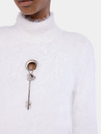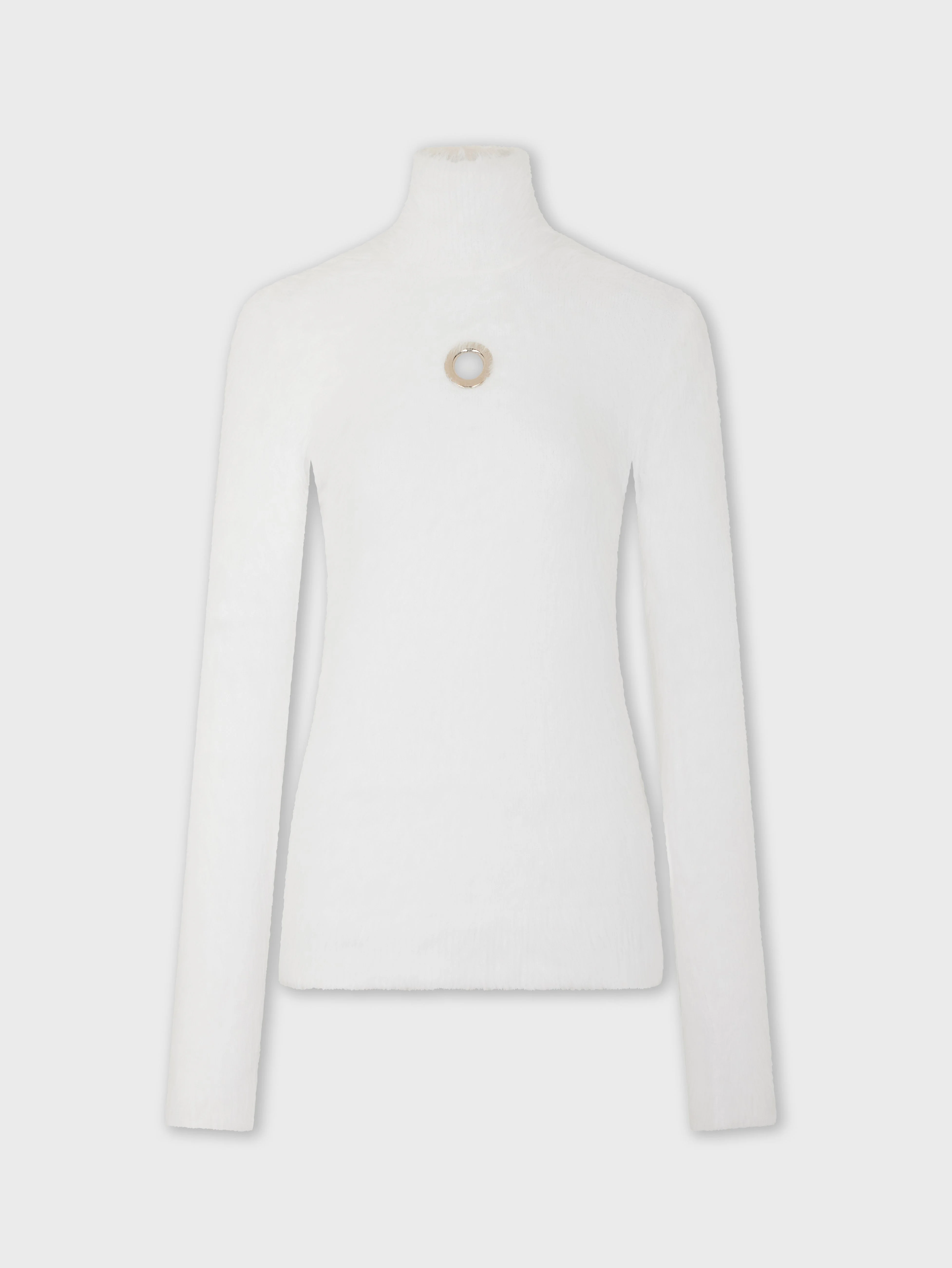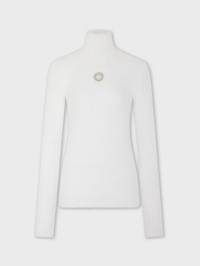 Turtle-neck top with long sleeves in brushed technical knitted yarns featuring silver metal eyelet detail. - Color: White - Stand collar - Long sleeves - Composition: 100% Polyamide - Made in Italy Size & Fit - Model's height: 180 cm / 5ft 11in - Model wears a size FR 36 / UK 8 / US 4 - This style is true-to-size - We recommend your usual size.