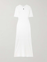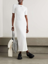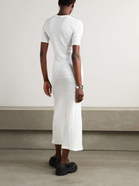EDITORS'NOTES Rabanne’s maxi dress is made from cotton that's intricately pointelle-knitted - a closer look reveals the recurring 'R' pattern throughout. It's designed for a figure-hugging fit and has the logo embellishment just below the neckline. Wear yours with loafers or knee boots. SIZE & FIT Model measurements: - Fits true to size, take your normal size - Designed for a slim fit - Lightweight, slightly stretchy fabric - Model is 177cm/ 5'10" and is wearing a FR 36 - Bust: 79cm/ 31" - Waist: 61cm/ 24" - Hip: 89cm/ 35" DETAILS & CARE - White pointelle-knit cotton - Slips on - 100% cotton - Machine wash