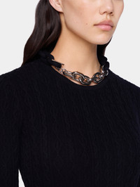 Details of XL link gold signature necklace at the neckline. - Color : Black - Stand collar - Long sleeves - Ankle length - Details of XL link gold signature necklace at the neckline. DETAILS - Composition : 90% Wool, 10% Cashmere. - Made in China - Model's height: 180 cm / 5ft 11in - Model wears a size FR 36 / UK 8 / US 4 - This style is true-to-size - We recommend your usual size.