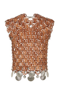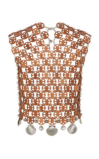 PRODUCT DETAILS - Sleeveless, wooden disk chainmail, cropped hem - Button fastening - unlined - Composition: 100% Wood - Color: Wood - Specialist clean - Pre-Fall '25