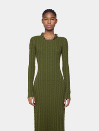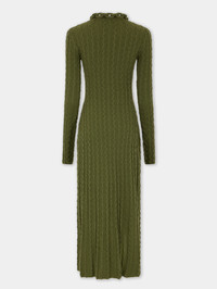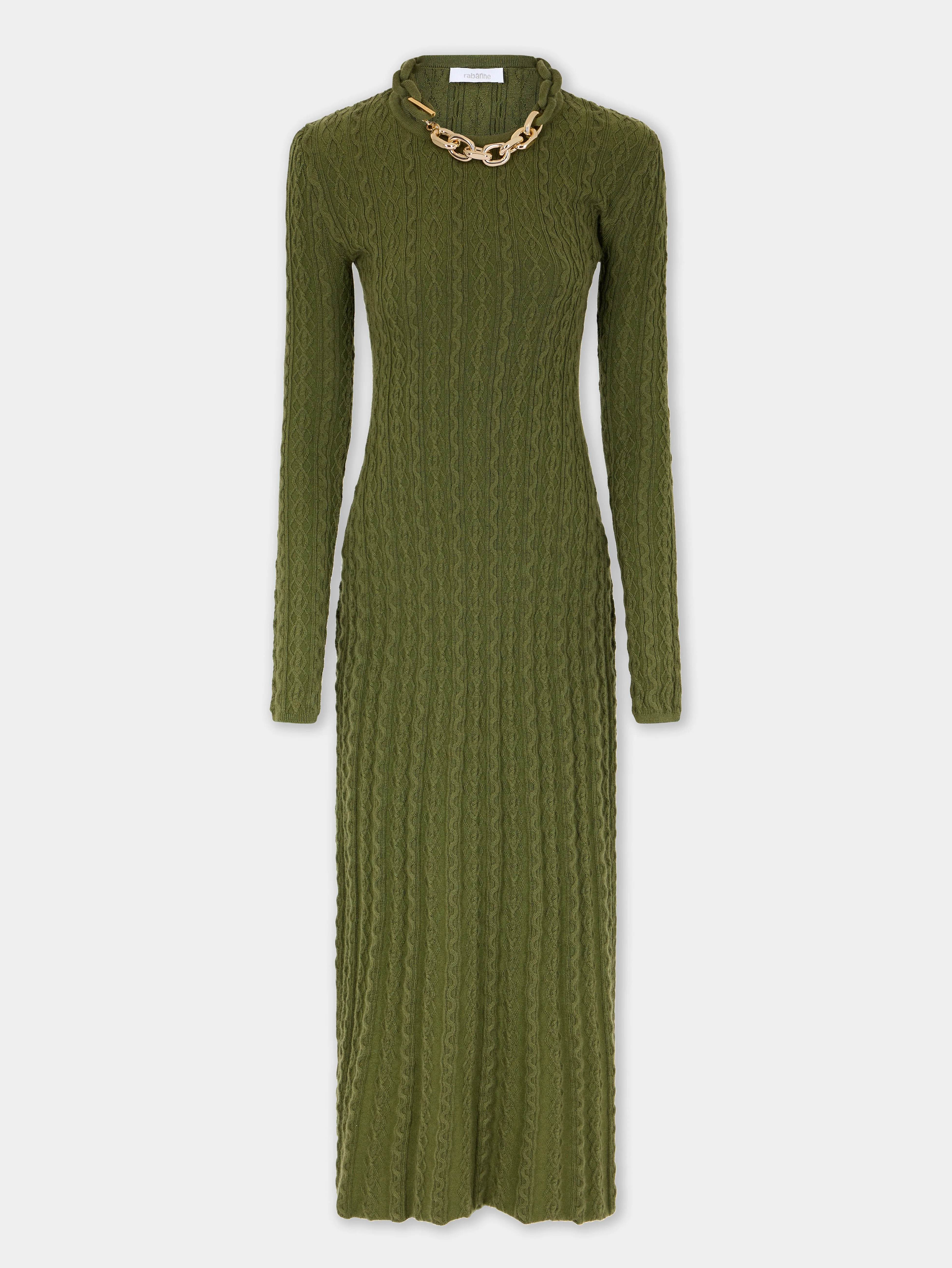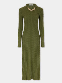 Details of XL link gold signature necklace at the neckline. - Color : Khaki - Stand collar - Long sleeves - Ankle length - Details of XL link gold signature necklace at the neckline. DETAILS - Composition : 90% Wool, 10% Cashmere. - Made in China - Model's height: 180 cm / 5ft 11in - Model wears a size FR 36 / UK 8 / US 4 - This style is true-to-size - We recommend your usual size.