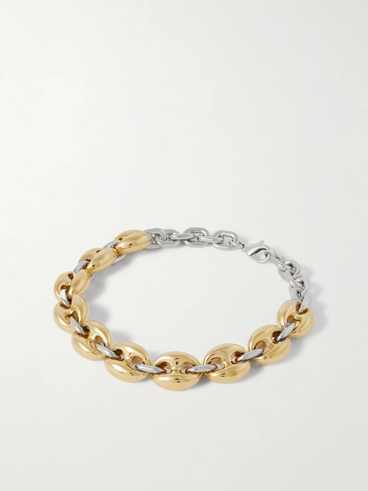 Rabanne's 'X Eight' necklace is strung with chunky links that look just like the ones that make up the brand's chainmail bags and accessories. It's crafted from contrasts of silver and gold-tone metal and polished to a high shine. The short length means it sits neatly against your collarbones.