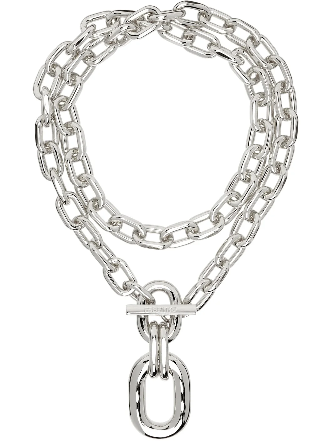 Wraparound cable chain necklace in silver-tone brass. · Pendant at drop · Logo-engraved toggle fastening · L32" Supplier color: Silver Brass. Made in Italy 252605F023002