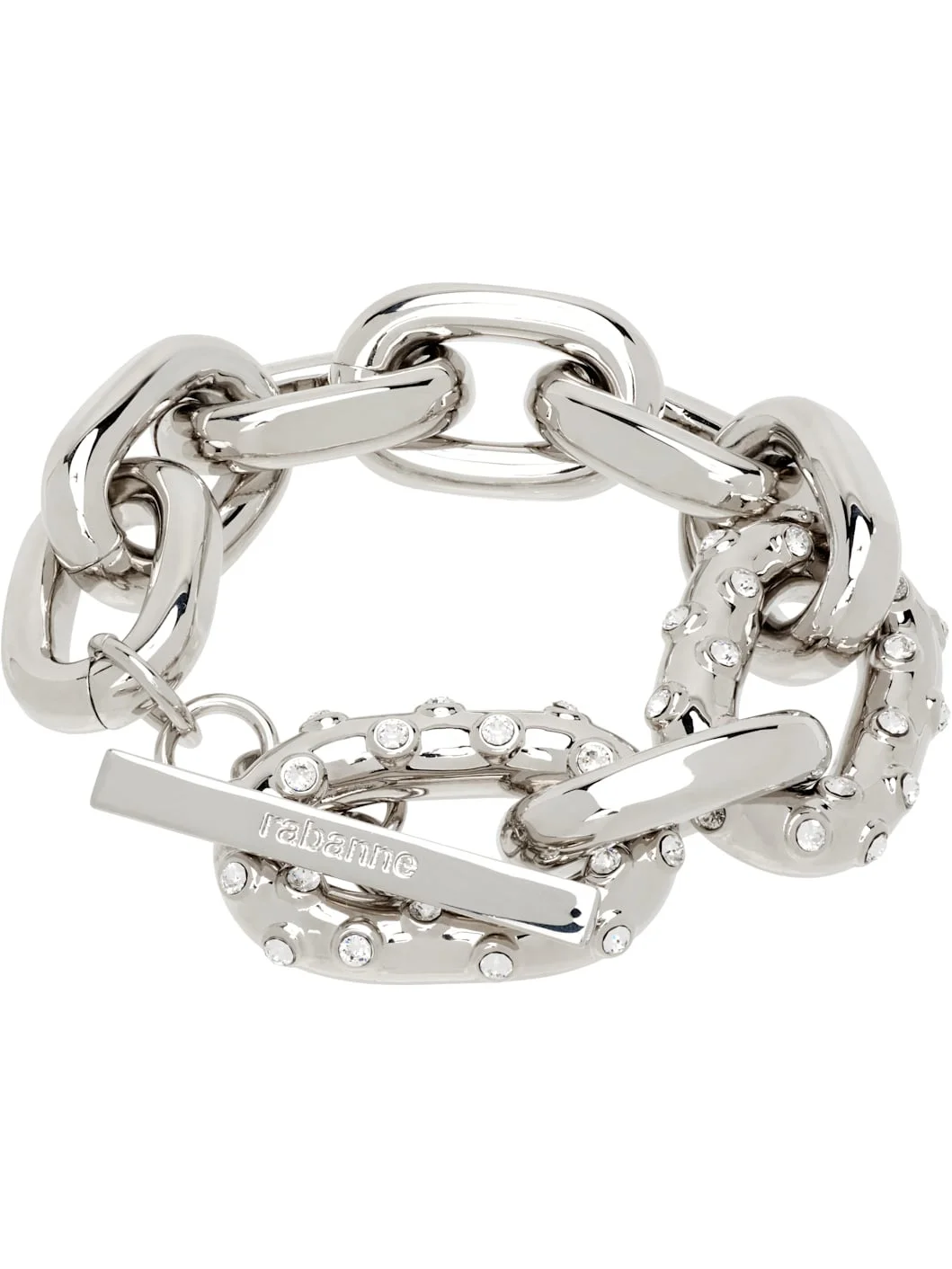 Cable chain bracelet in silver-tone brass. · Bezel-set crystals at length · Logo-engraved toggle fastening · L10" Supplier color: Silver/Crystal Brass, crystal. Made in Italy 252605F020005