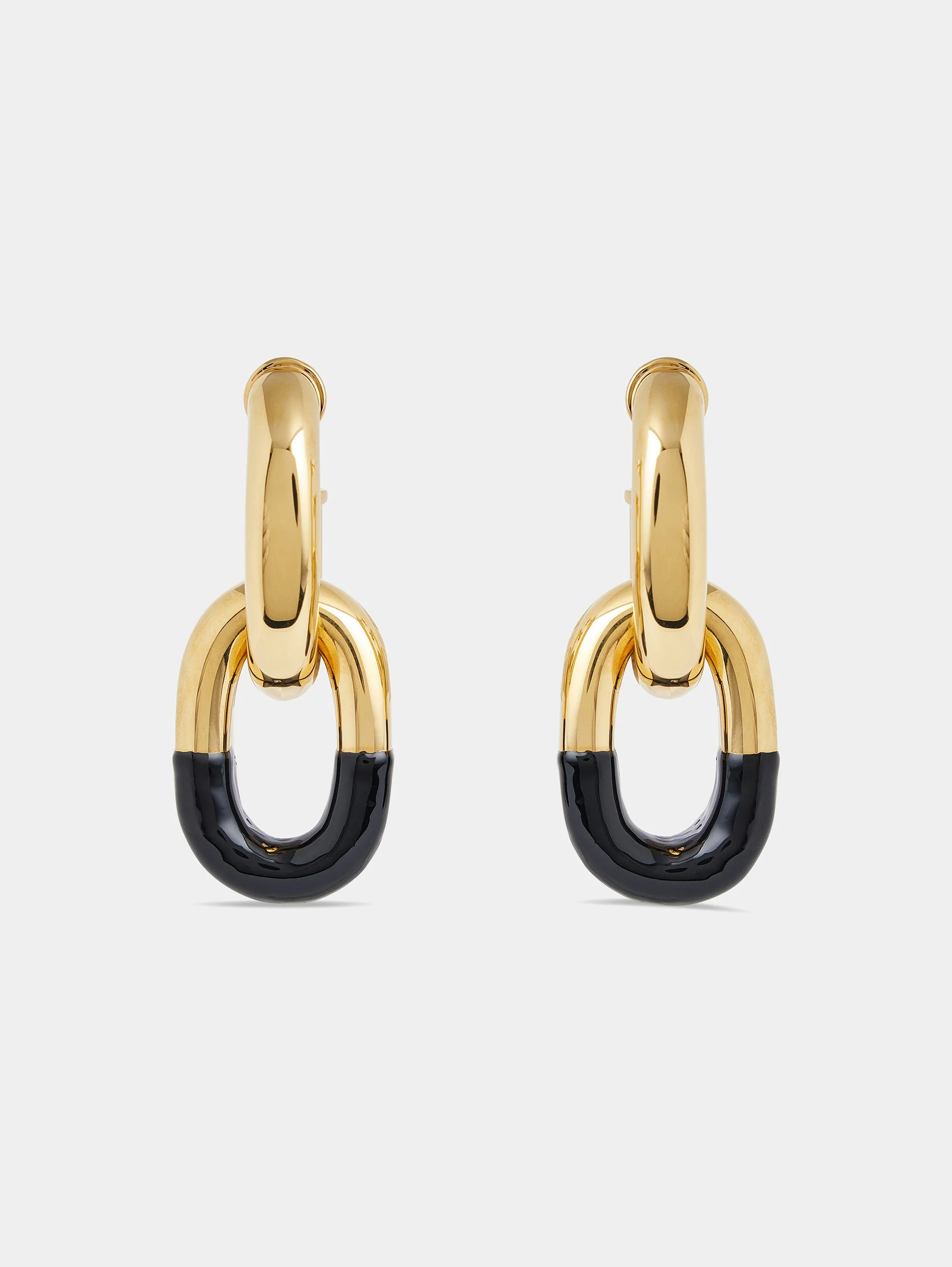 XL Link earrings in gold with black enamel-dipped link. - Color: Black / Gold - Dimension: 5x3cm - Butterfly clasp - 70% Aluminium, 30% Enamel - Made in Italy