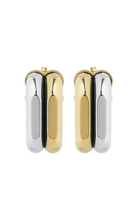 Tinged with his chic Parisian spirit, Julien Dossena returns with a lineup of jewelry and accessories in varied textures and materials that demonstrates the sensorial power of fusing contrasts. These aptly named hoops are oversized and chunky, made from gold and silver-tone aluminium. They’re designed to mirror one another, so you get to decide which metallic complements your complexion. PRODUCT DETAILS - Post fastening - Composition: 100% aluminium - Made in Italy SIZE & FIT - This item measures 3 cm