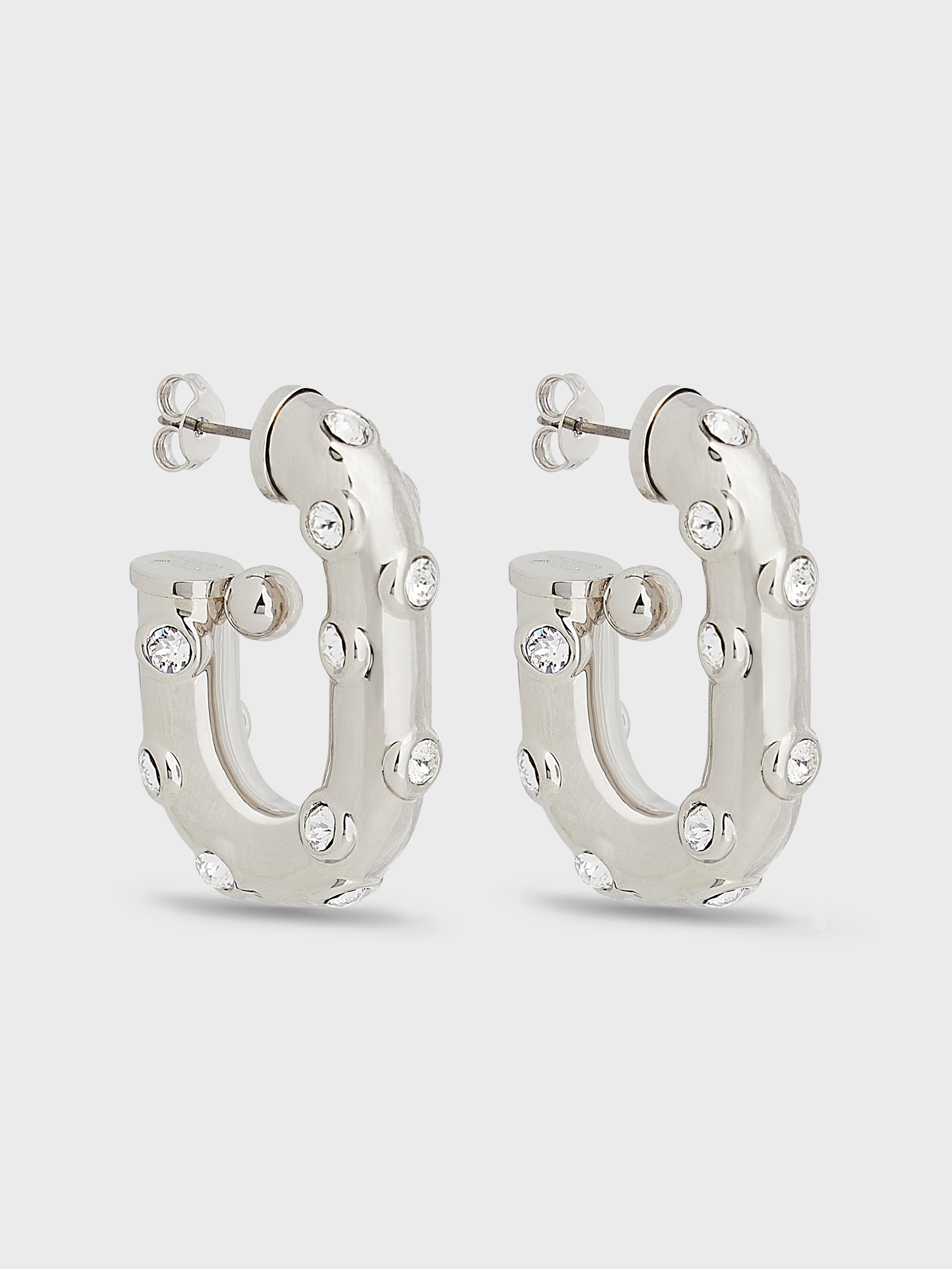 Pair of XL earrings composed of a link adorned with rhinestones. - Color: Silver / Rhinestones - Composition: 100% Brass - Made in Italy