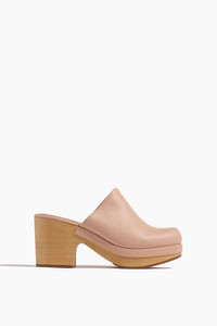 The Rachel Comey Bose Clog features their signature silhouette. You'll love the wooden, platform sole of these clogs with a leather upper. FIT DETAILS - Clogs - Platform sole - 70mm heel, 30mm platform - Upper in 100% Leather, Platform in 100% Wood, Sole in 100% Rubber
