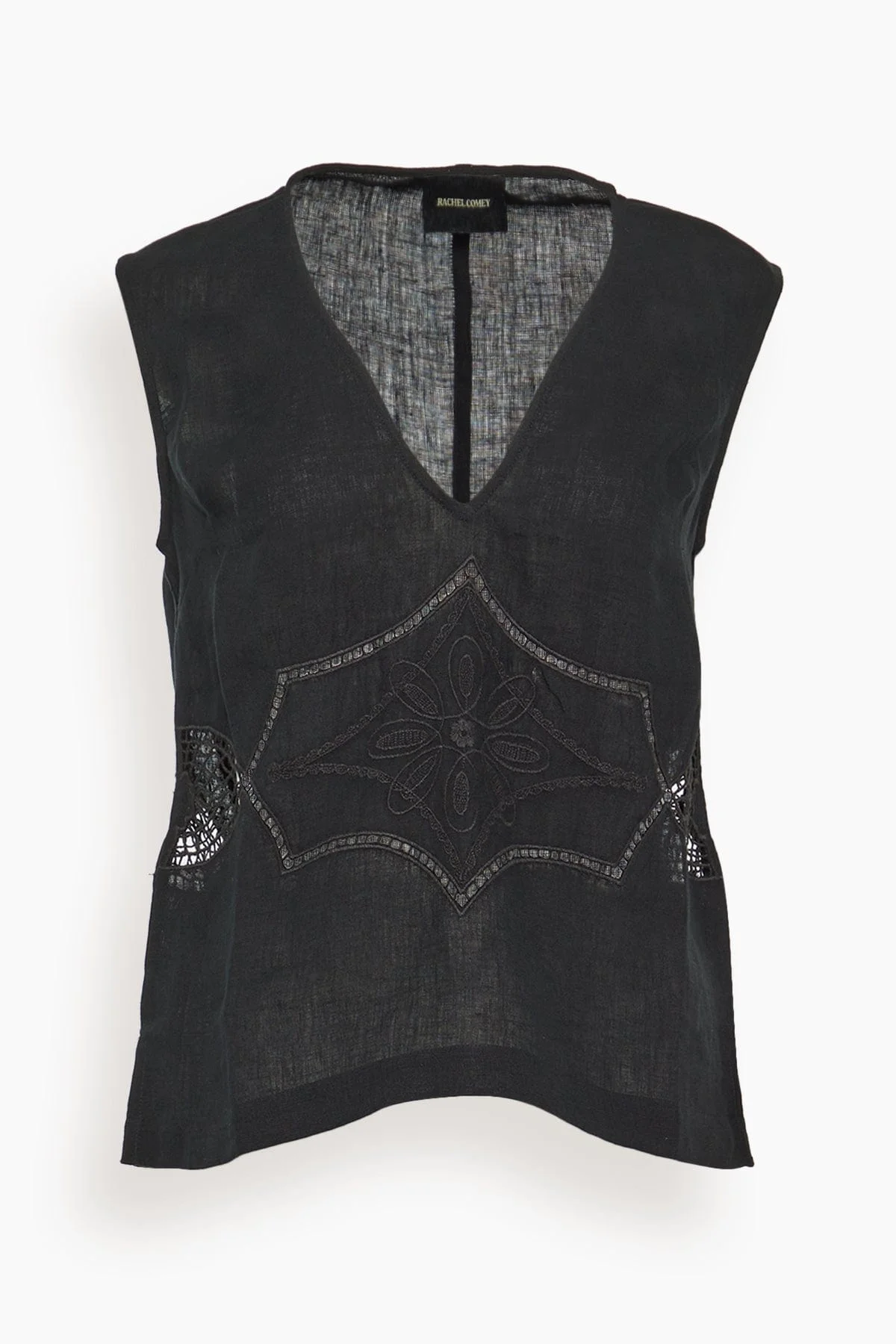 The Rachel Comey Hendry Top will easily transition from summer to fall. This top features a straight silhouette with beautiful embroidery. Wear yours with jeans and sandals. - Sleeveless top - Crew neckline - Straight silhouette - Embroidery